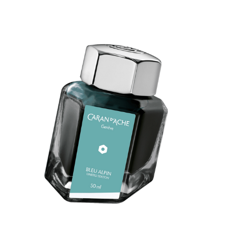 Contenant un encrier de 50 ml de couleur bleu alpin